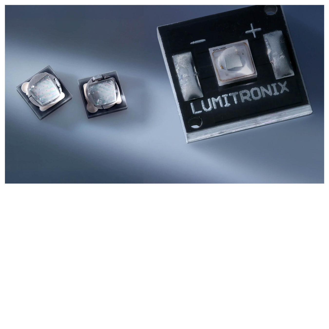 Bei LUMITRONIX finden Sie leistungsstarke UV LED-Produkte für verschiedenste Anwendungen. Unser Sortiment umfasst einzelne UV-LEDs, UV-LEDs auf 10x10mm-Platinen, lineare UV LED-Module (PowerBar, Violet), komplette UV-Leuchten sowie passende UV-Optiken. Erhältlich in den Wellenlängen UV-A, UV-B und UV-C eignen sich unsere Lösungen ideal für Desinfektion, Härtung, Materialprüfung und Spezialanwendungen. Profitieren Sie von modernster UV LED-Technologie und der langjährigen Expertise von LUMITRONIX.